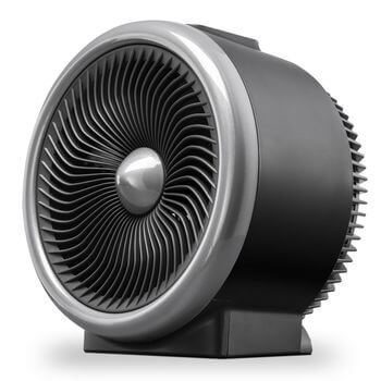 Noi am găsit soluția: Turbospin! Prin tehnologia turbospin, TFH 2000 E produce o repartizare uniformă a căldurii în încăpere, prin circulație uniformă de aer. Aerul din încăpere este aspirat pe partea din spate a ventilatorului. Aici se întâlneşte cu 5 palete puternice, arcuite ale rotorului cu o rotaţie extrem de rapidă. Aceste palete arcuite ale ventilatorului ventilează foarte puternic, producând o accelerare mare a jetului de aer. În plus, grilajul de protecţie în formă de spirală al ventilatorului este nu doar un accent estetic, ci şi forţează suplimentar ventilarea. Jetul de aer, acum puternic comprimat, precum un tornado, este expulzat din aparat, precum un jet de aer aflat în rotire, fiind împrăştiat puternic în încăpere. Zonele reci şi calde din încăpere vor fi astfel atinse şi climatizate. Jetul de aer ajunge la peretele din faţă sau colţ, fiind acolo direcţionat spre toate parţile. Prin pereţii laterali şi pe la plafon, aerul se reîntoarce în ventilator, iar circuitul aerului reîncepe. Prin acest principiu turbospin eficient, aerul din încăpere va fi ventilat şi amestecat puternic. Diferenţa dintre podeaua rece şi temperatura din tavanul cald va scădea astfel semnificativ iar dvs veţi simţi o căldură uniformă, în întreaga încăpere.
