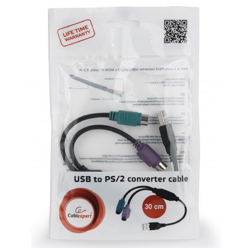 Converter USB to PS/2, 0.3 m, Black, UAPS12-BK
