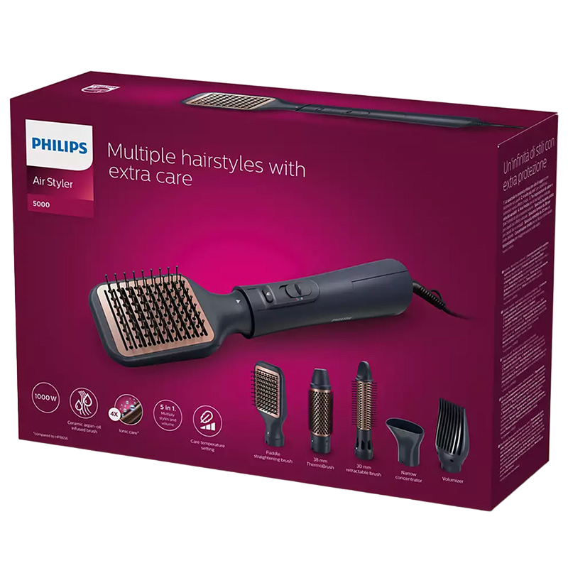 Uscător de păr-perie Philips BHA530/00, 1000W, Negru