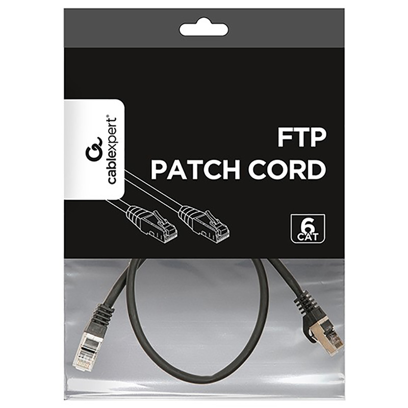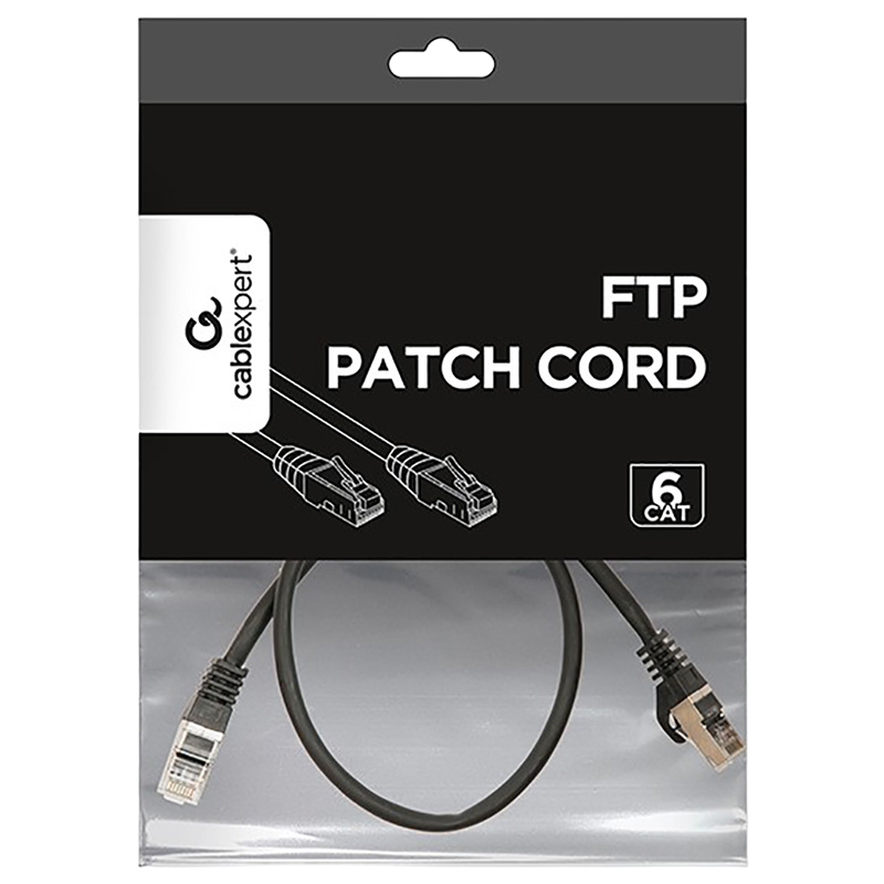 Patch Cord Cat.6/FTP, 0.5m, Black, PP6-0.5M/BK, Cablexpert