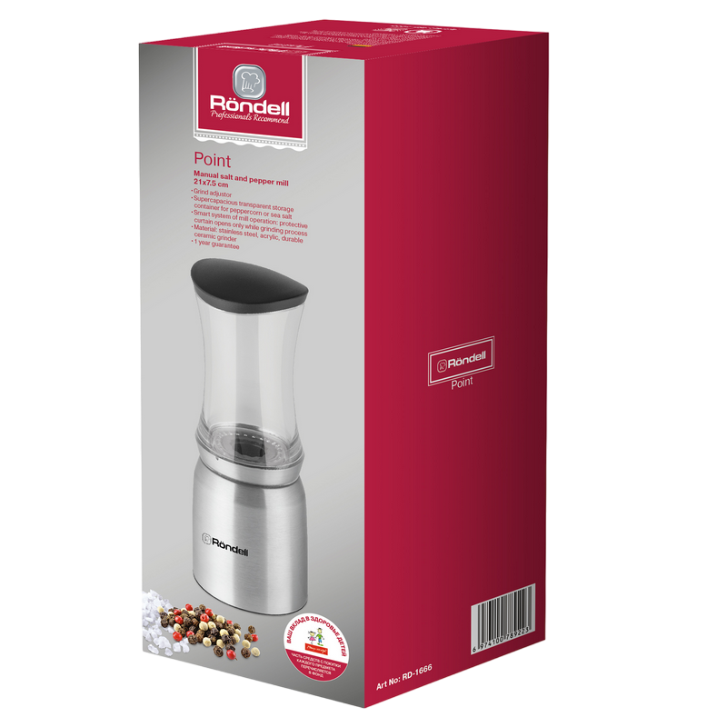 Râșnița de sare și piper Rondell RD-1666, Oțel inoxidabil
