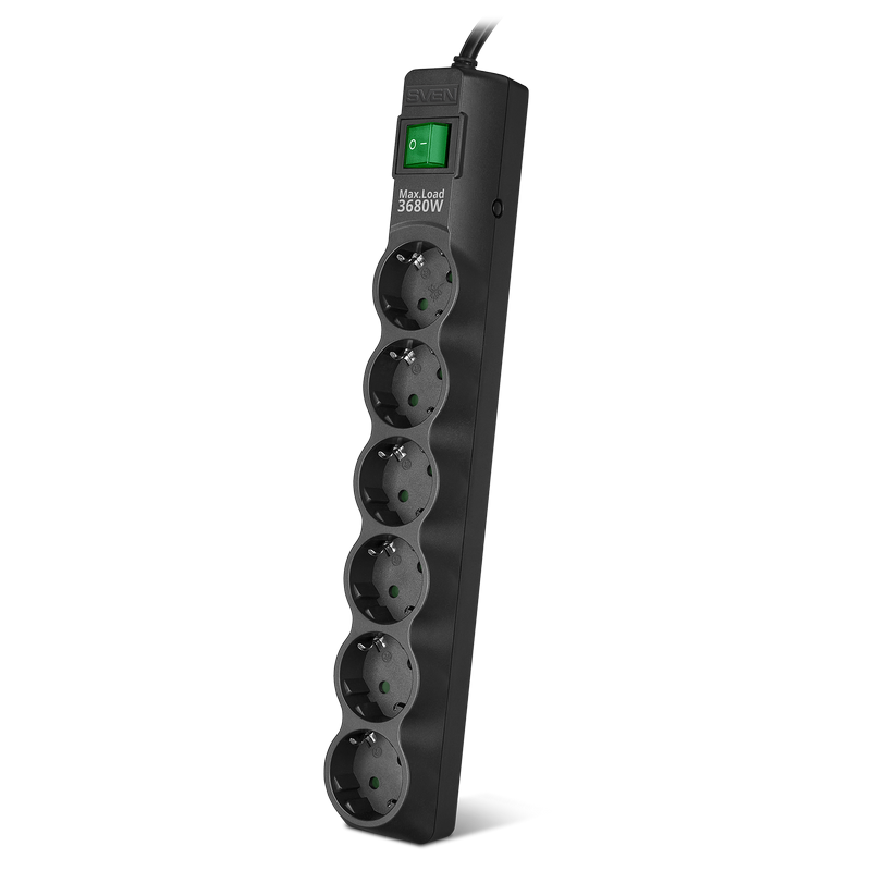Prelungitor electric SVEN SF-06E-16, 6 Prize, 5m, Negru