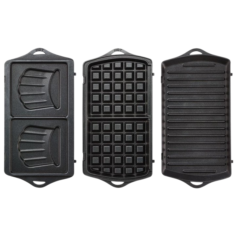 | Set | 3 panouri detașabile: pentru sandvișuri, pentru vafe, grătar |