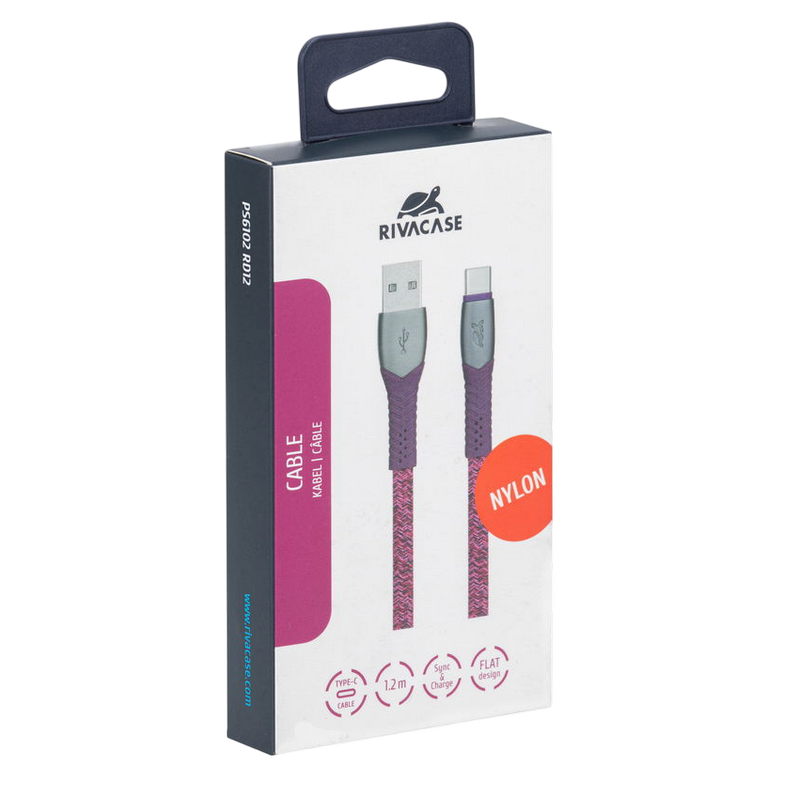 Type-C Cable Rivacase PS6102 RD12, nylon braided, 1.2M, Red